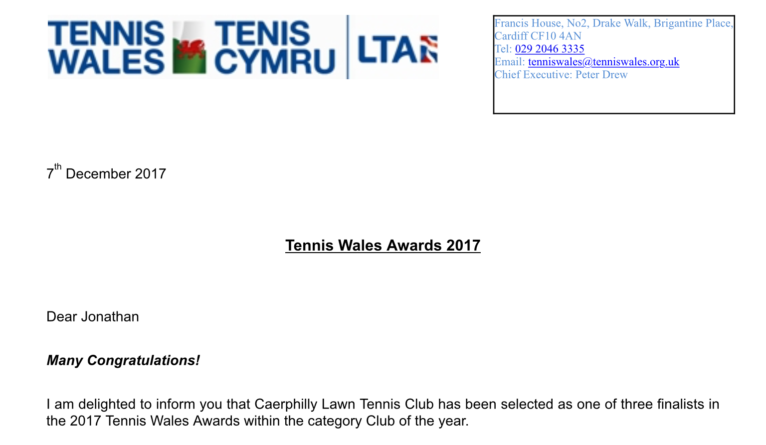 Tennis Wales Club of Year 2018 & 2019 LTA Club of Year Finalist 2019 & 2020