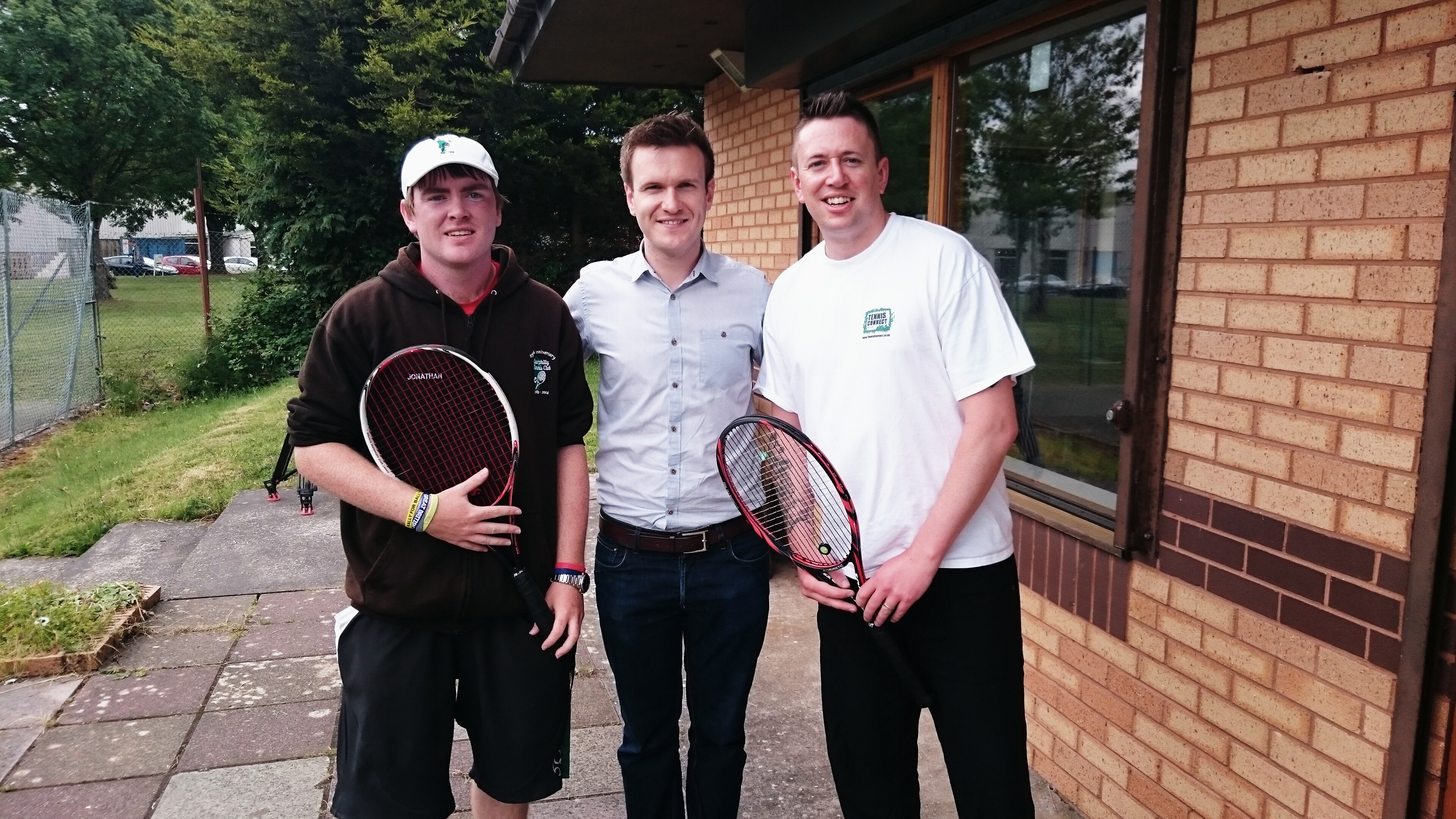 (Left to right) CTC Head Coach Jonathan Morgan, BBC Wales Today presenter Tomos Dafydd, Tennis Connect Wales founder Steve Milne.